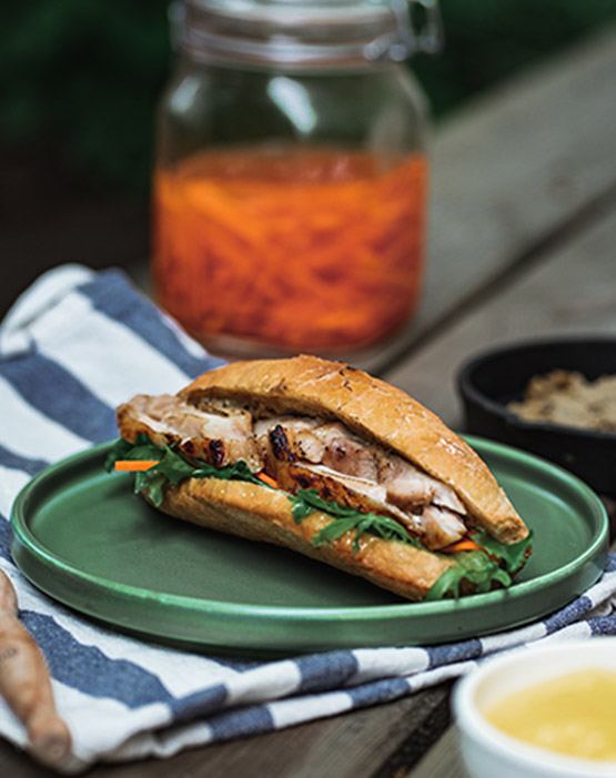 Thinly sliced bread brushed with olive oil